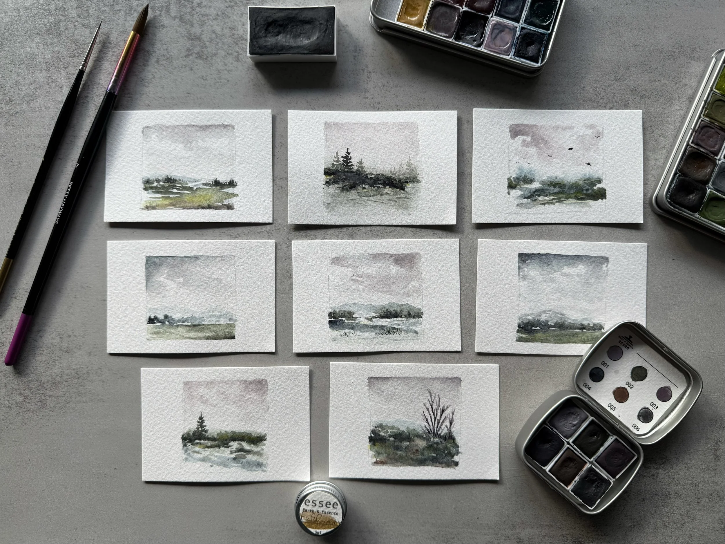 Behind every work are hours and hours of trials and errors. I mostly use my many sketchbooks to collect ideas, and sketch the landscapes I see in my mind.